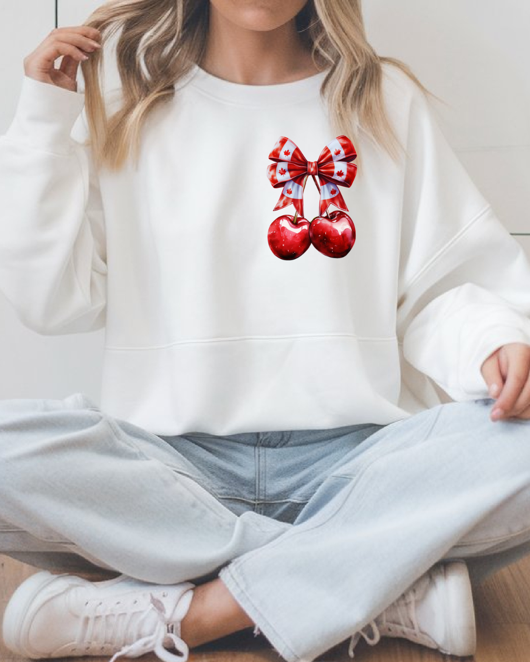 The unique bow design featuring the Canadian flag and a cherry accent makes this sweatshirt a stylish way to express your love for Canada. Stand out and show off your vibrant spirit!